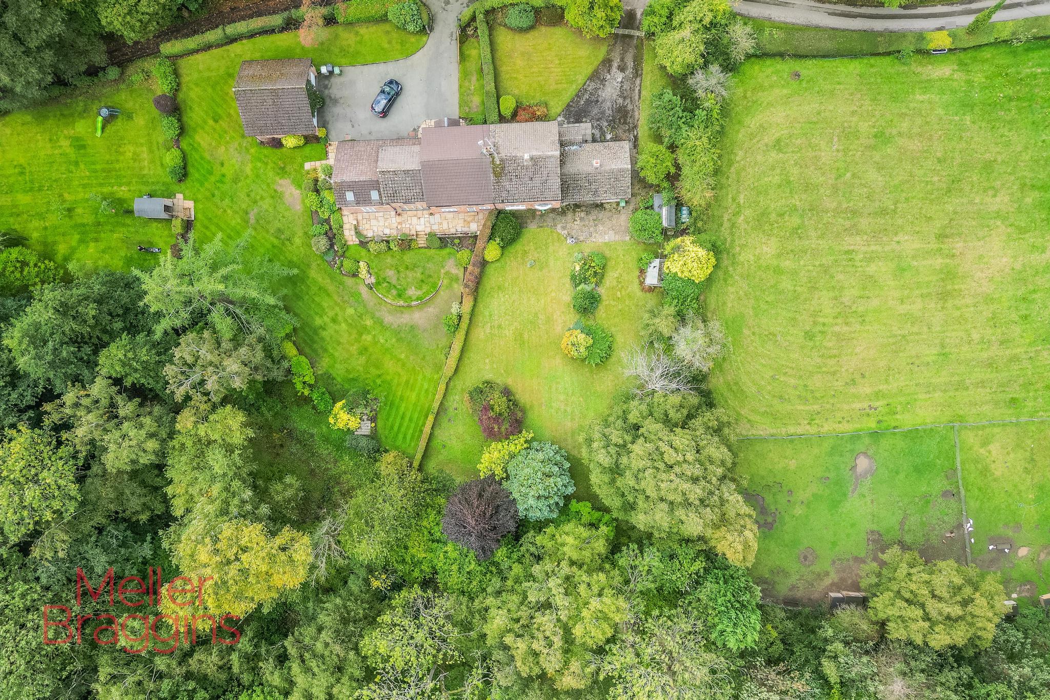 To the rear, a private path leads to an optional ¾ acre parcel of leisure land, available by separate negotiation, ideal for gardening, recreation, or as a private retreat. Mobberley is a picturesque and popular village set amidst open countryside between Knutsford and Wilmslow. Surrounded by farmland and scenic views, the village offers a true sense of rural living with the convenience of nearby town amenities.